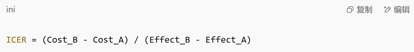 ICER是评估策略优劣的关键经济指标,其计算方式为: